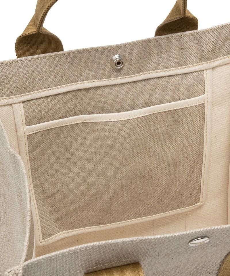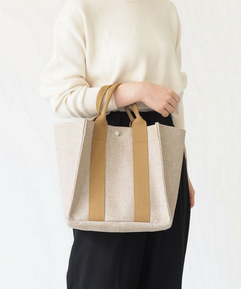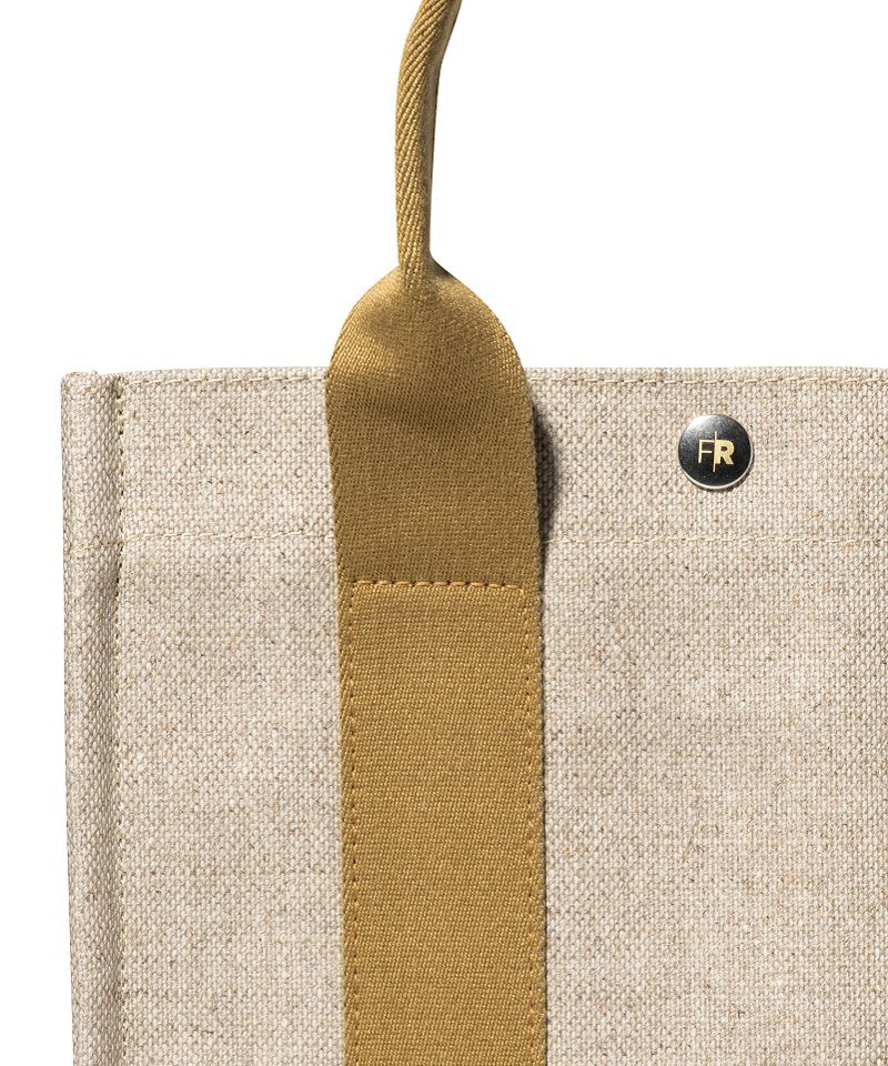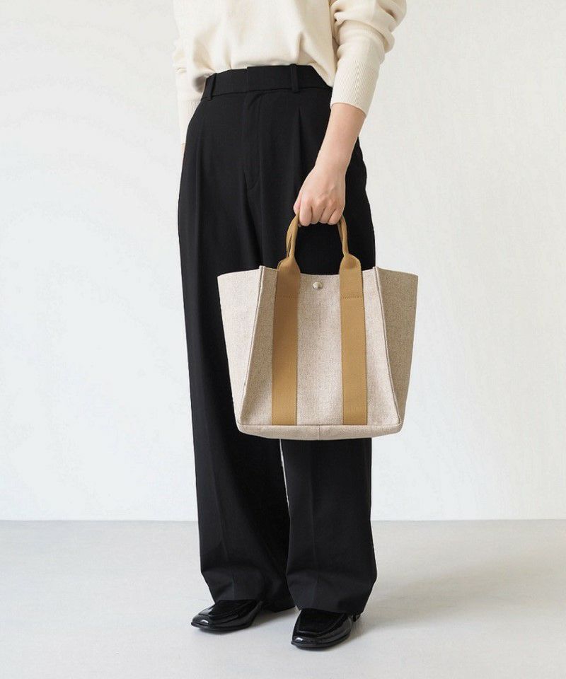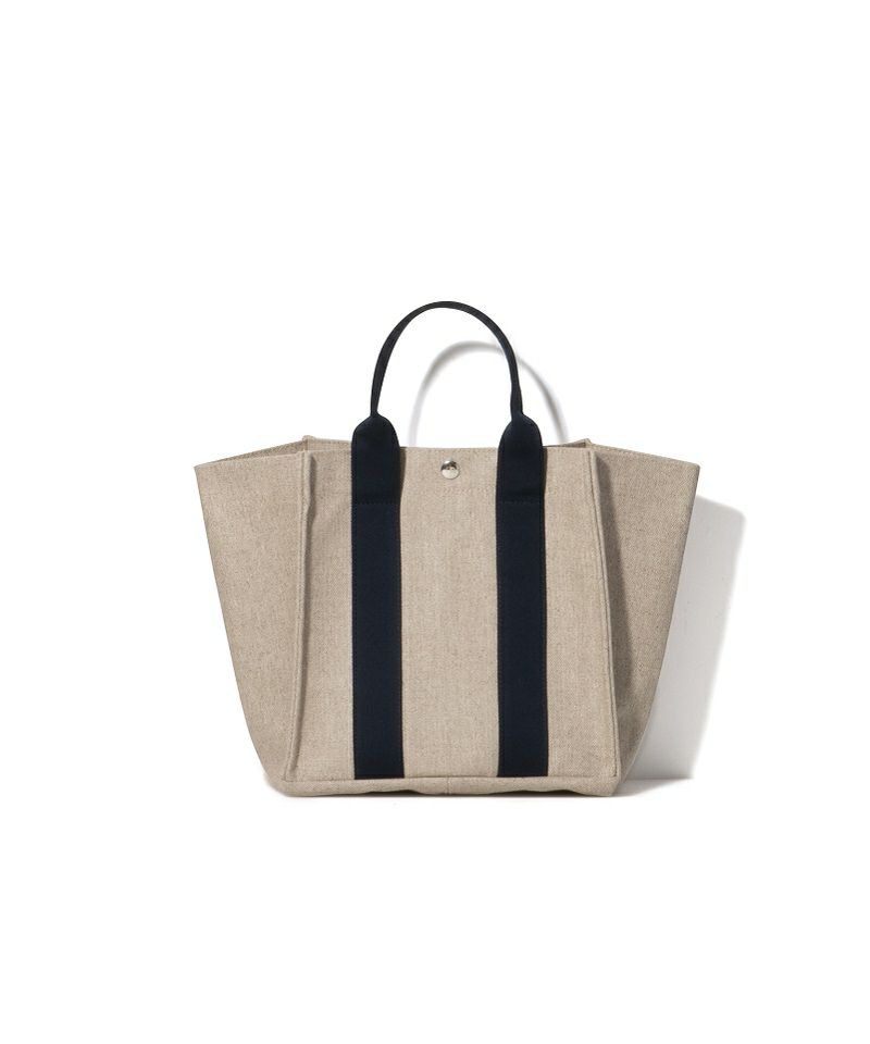 大きめにマチをとったトートバッグは抜群の収納力が魅力。マチをたためばミニマルなスクエアトートに。ボディにはリネン素材にコーティングを施したインテリアテキスタイルを使用。撥水・防汚に優れたタフな使い心地と、驚きの軽やかさ、使うたびにリネン素材が柔らかく、しなやかに変化していくのを楽しめます。