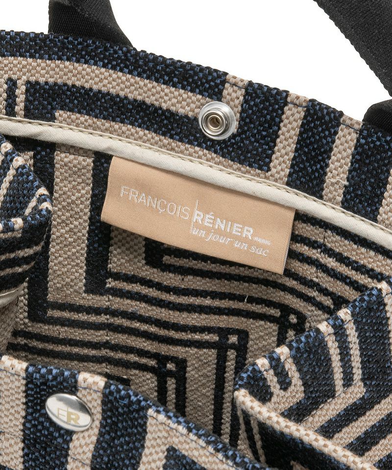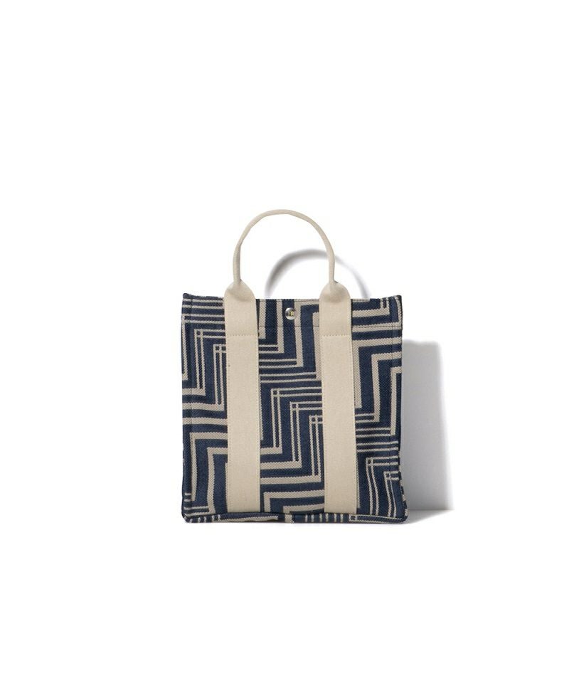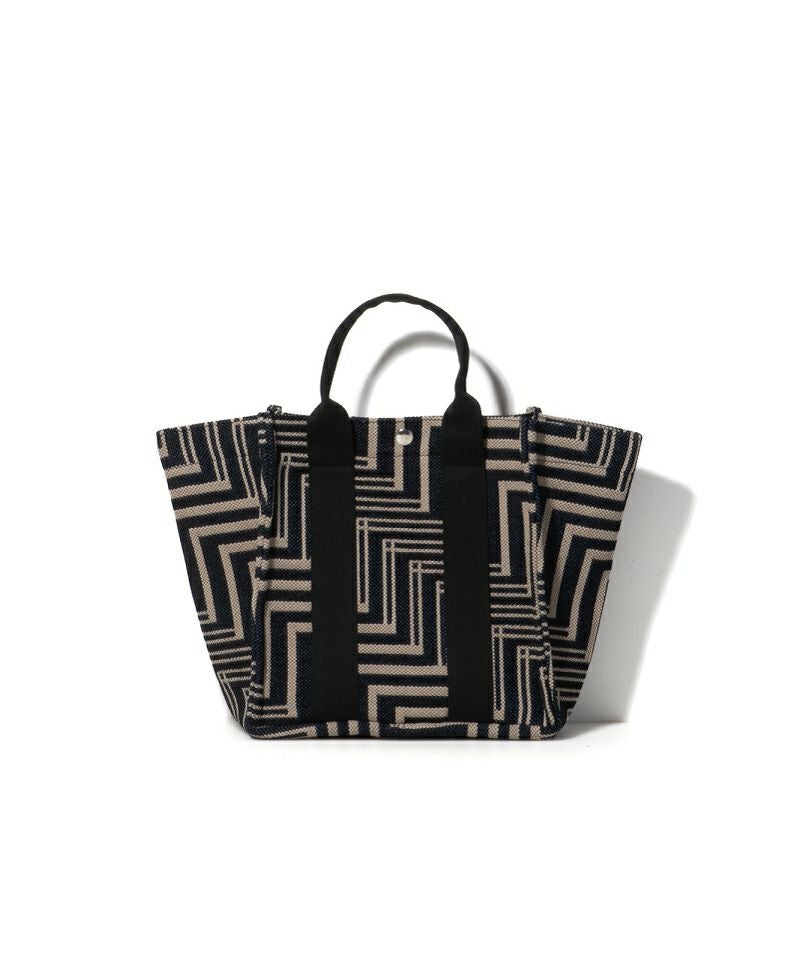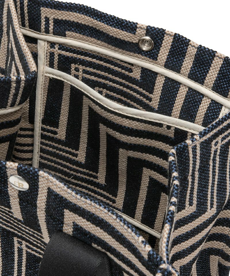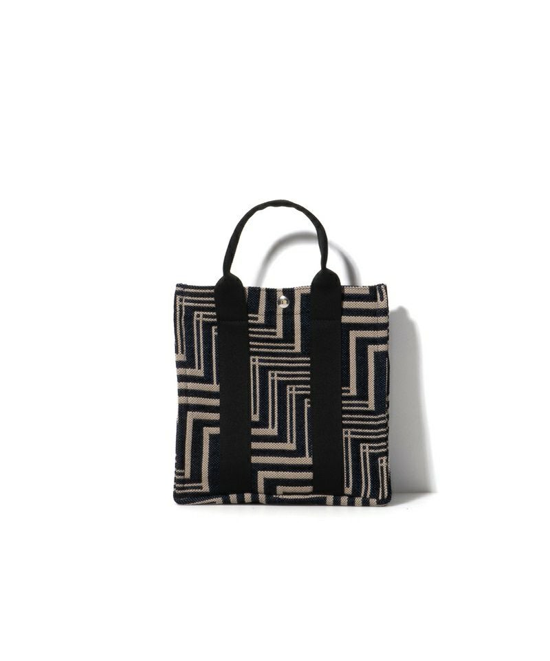 イタリア製のジャガード素材を採用した新作「OPTIX」シリーズ。グラフィカルな柄に、スパイシーな雰囲気で持てる モノトーンのコンビネーションがアイキャッチに。インテリアファブリックにも使用される上質なコットン素材で仕上げています。大きめにマチをとったトートバッグは抜群の収納力が魅力。マチをたためばミニマルなスクエアトートに。