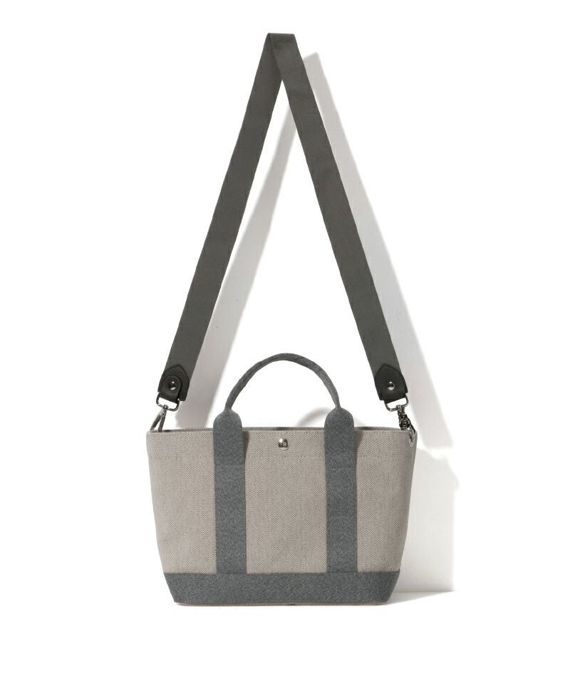 ソファに用いられるインテリアファブリックを使用しているため、耐久性に優れているのも魅力です。バッグ内にはキーやチャームなどを取り付けられるリング付き。斜め掛けにしても使えるミニサイズはストラップの取り外しができる2WAY仕様。必要なものがしっかり収まる実用的なサイズ感も魅力で、オンオフ問わず幅広く活躍してくれます。