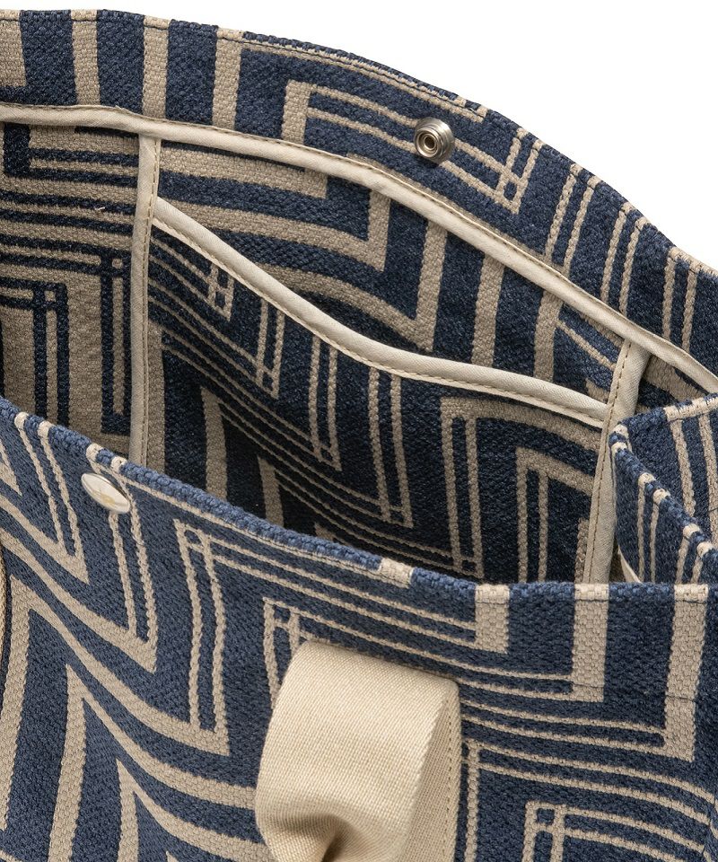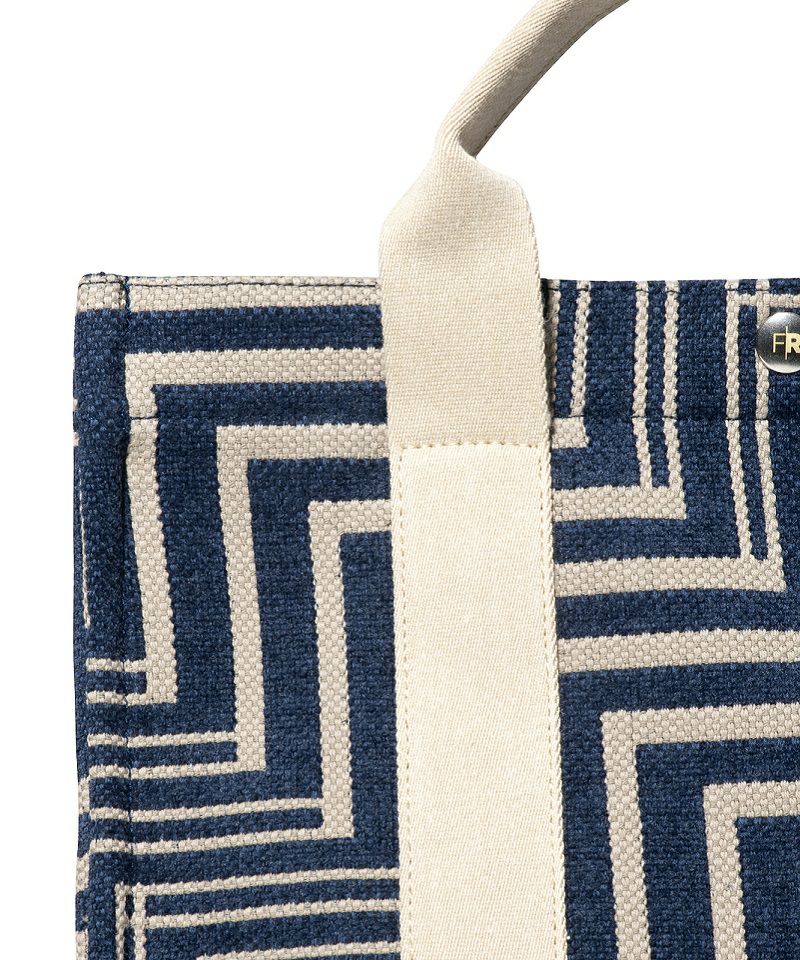 イタリア製のジャガード素材を採用した新作「OPTIX」シリーズ。グラフィカルな柄に、スパイシーな雰囲気で持てるモノトーンのコンビネーションがアイキャッチに。インテリアファブリックにも使用される上質なコットン素材で仕上げています。ミニマルなフォルムの美しさが際立つ横長のスクエアデザインで、A4サイズのドキュメントやPCが横にすっぽりと収まります。