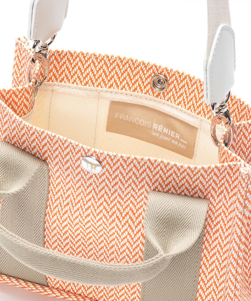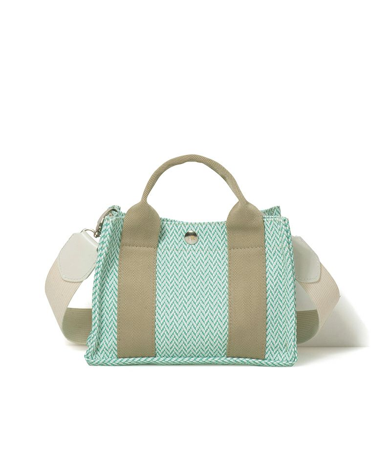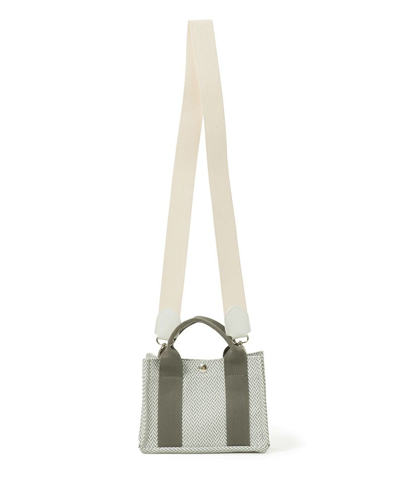 クラシックなヘリンボーン柄をPVC素材にのせることでモダンに落とし込んだ“CHEVRONA”。手のひらに乗るほど小さなサイズ感がキュートなマイクロミニトートバッグに、眩しい陽射しの季節に映えるカラフルなカラーラインナップは今シーズンの新作です。ストラップが付属でついているので、斜めがけをすればハンズフリーに。ミニウォレットや携帯、ポーチなど、小さいながらも必要なものがしっかりと入る収納力も魅力です。