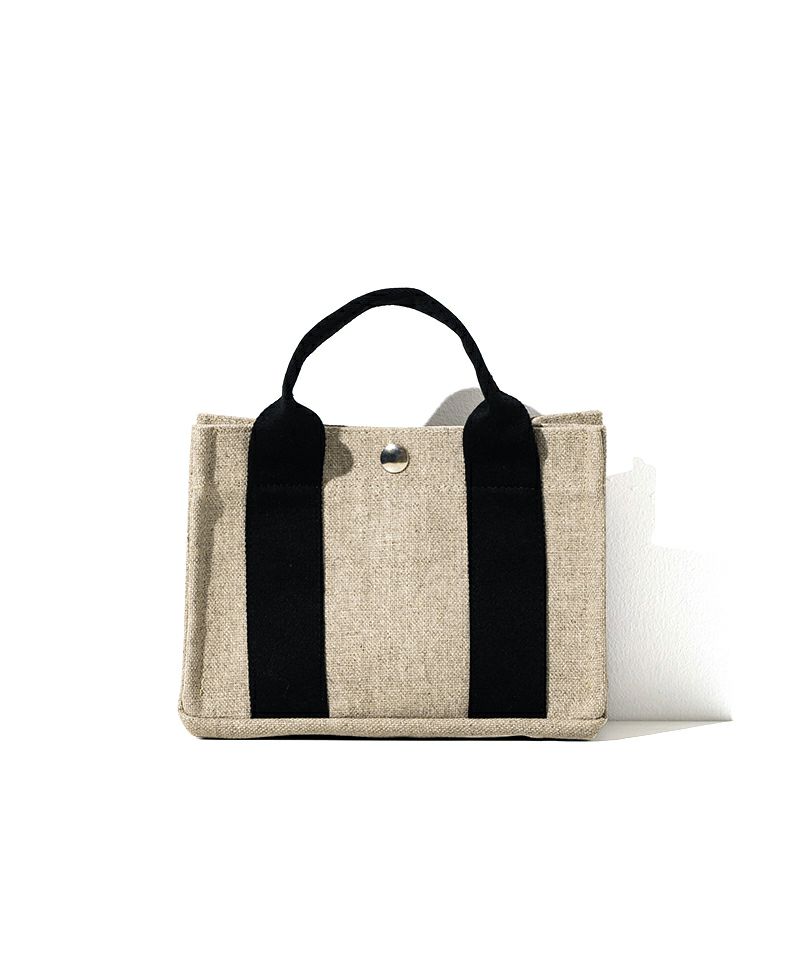 手のひらに乗るほど小さなサイズ感がキュートなマイクロミニトートバッグ。ストラップが付属でついているので、斜めがけすればハンズフリーに。持ち手のカラーが効いたミニマルなデザインに、ボディにはリネン素材にコーティングを施したインテリアテキスタイルを使用。撥水・防汚に優れたタフな使い心地と、驚きの軽やかさ、使うたびにリネン素材が柔らかく、しなやかに変化していくのを楽しめます。