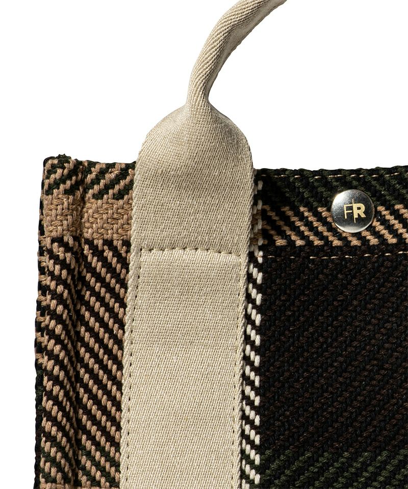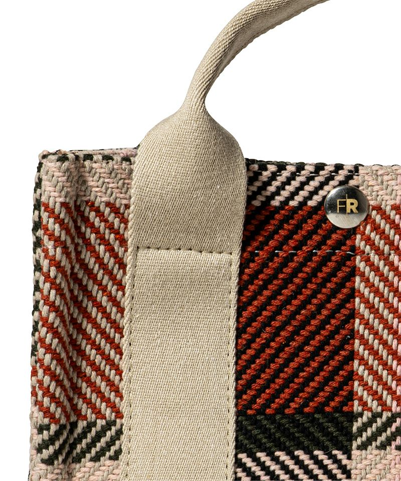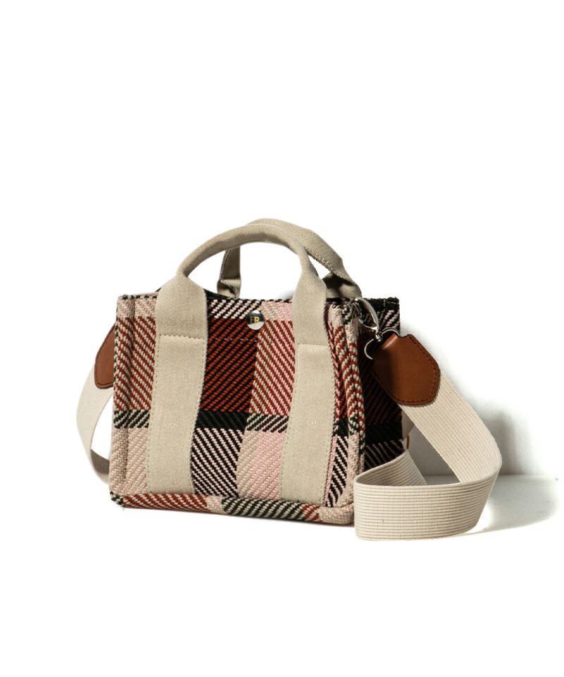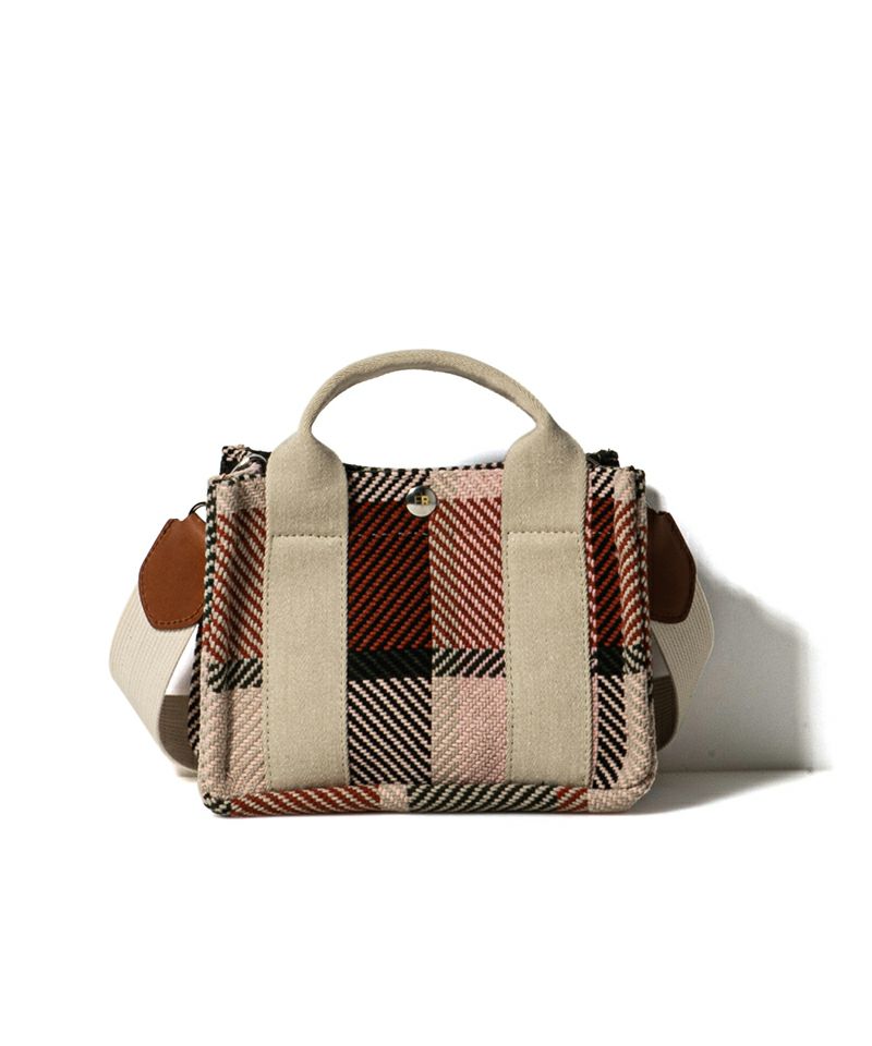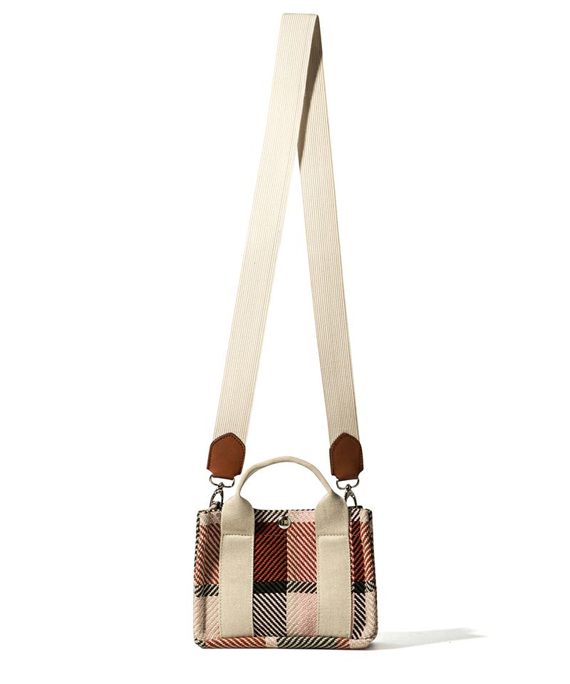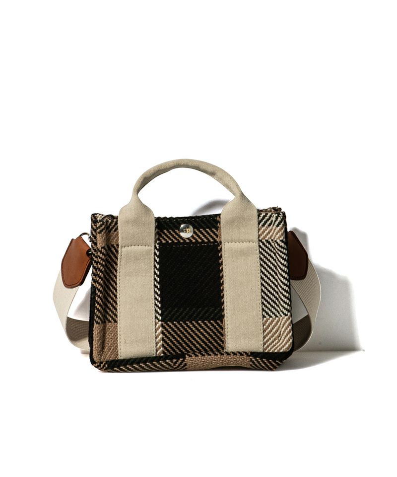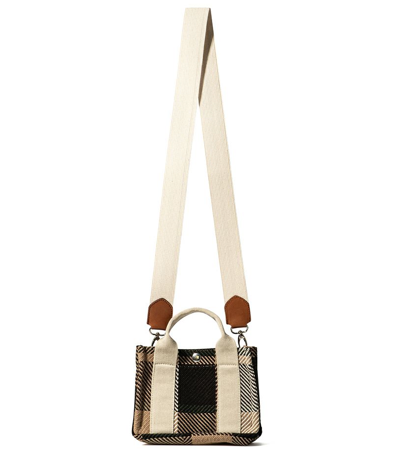 定番のマイクロトートバッグにトラッドなチェック柄が新しく仲間入り。 マイクロサイズに大柄のチェックというコントラストが楽しい「SHEEPY MICRO CAB」。チェック柄は大きめのパターンで構成されているため、モダンかつ端正な印象で持つことができます。 カーテンなどに使用するインテリアテキスタイルを採用しているため強度も優れています。 手のひらに乗るほど小さなサイズ感がキュートなマイクロミニサイズにストラップが付属でついているので、斜めがけすればハンズフリーに。