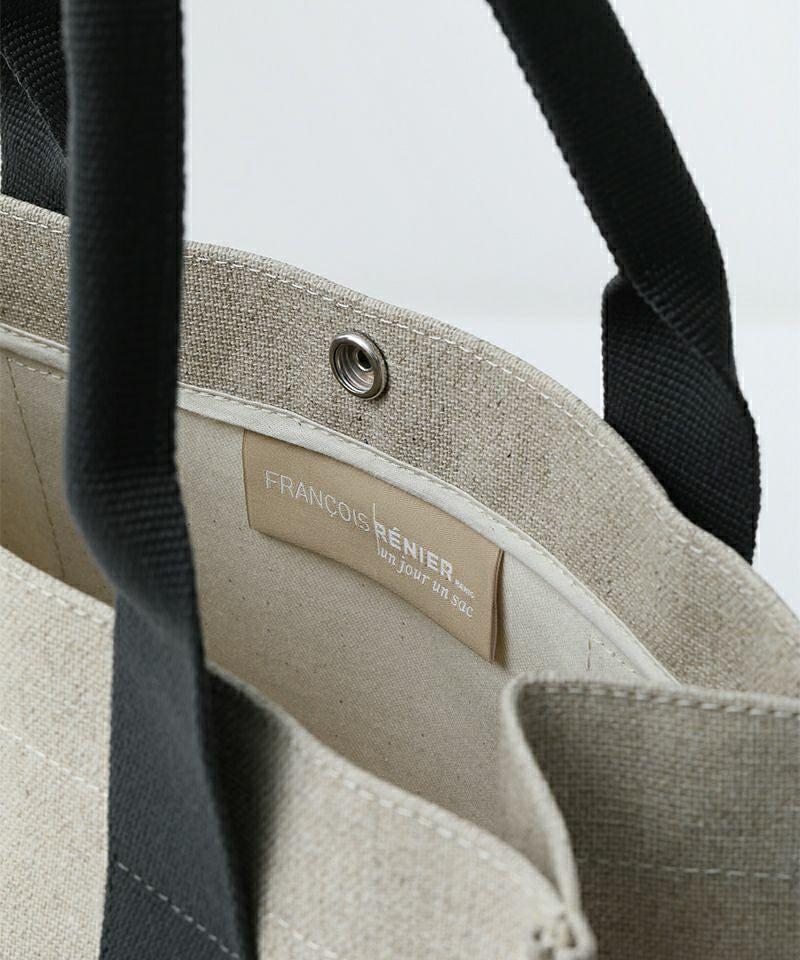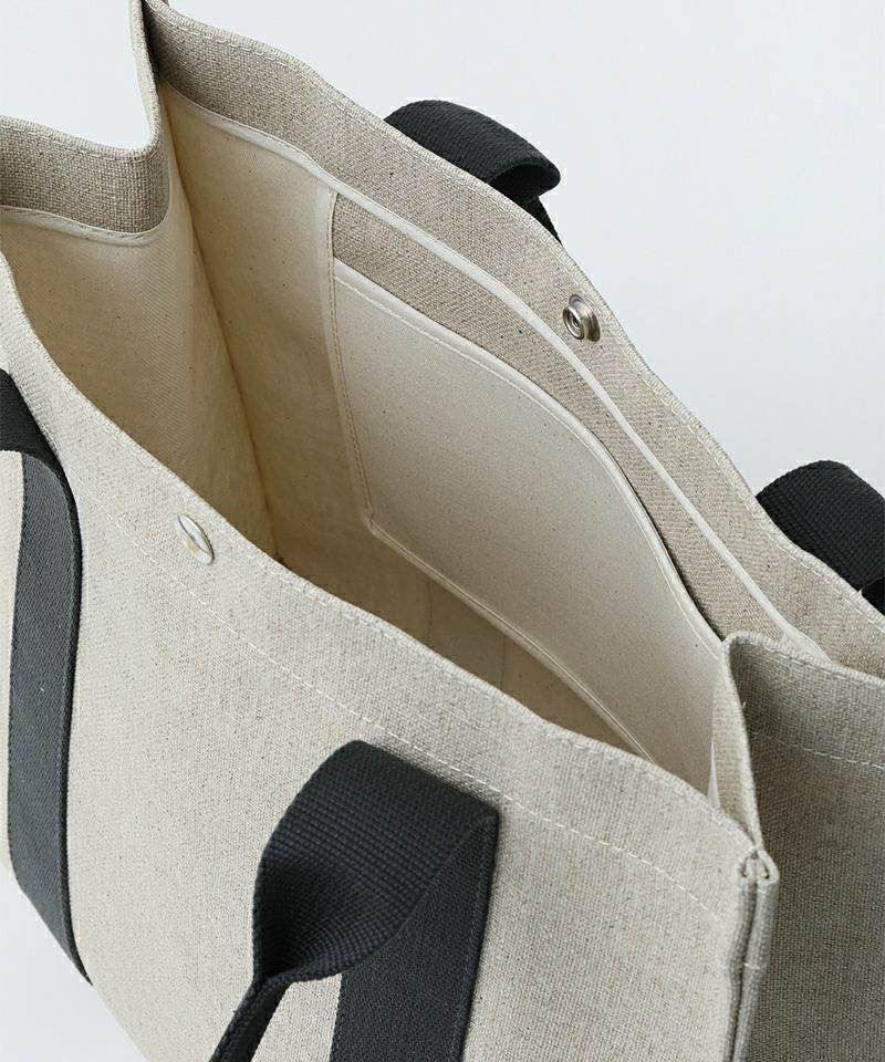 ボディにはリネン素材にコーティングを施したインテリアテキスタイルを使用。撥水防汚に優れたタフな使い心地と、驚きの軽やかさ、使うたびにリネン素材が柔らかく、しなやかに変化していくのを楽しめます。