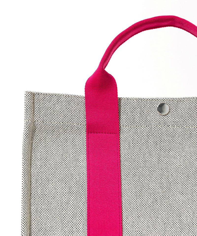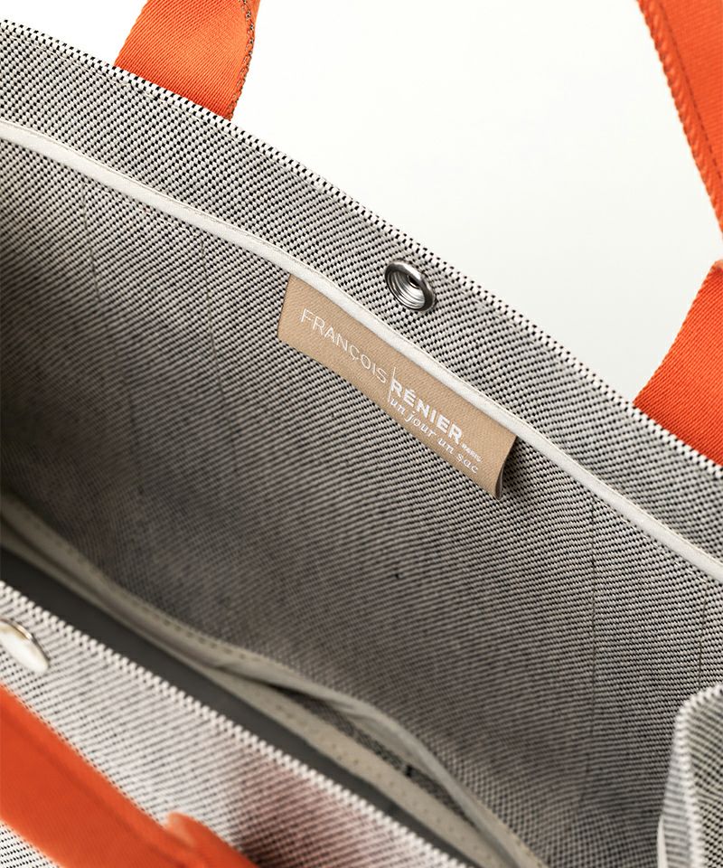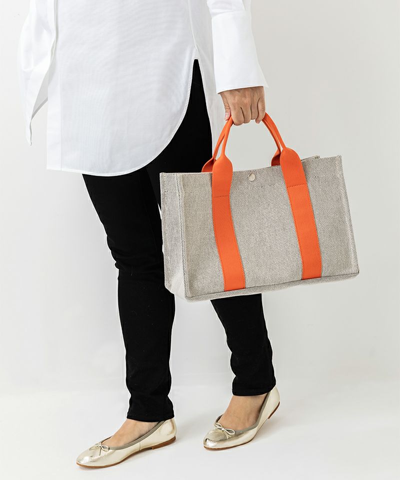 フレンチシックな洗練されたムードを醸し出してくれる“TEMS”トートバッグ。オールシーズン使える雰囲気を持った生地はソファに用いられるインテリアファブリックを使用しているため耐久性に優れているのも魅力です。ハンドルカラーとの組み合わせで表情の変化を楽しめ、軽やかながらもカジュアルに転びすぎません。ミニマルなフォルムが際立つ横長タイプのスクエアは、A4サイズのドキュメントが横に収められるたっぷりとした収納力が魅力です。